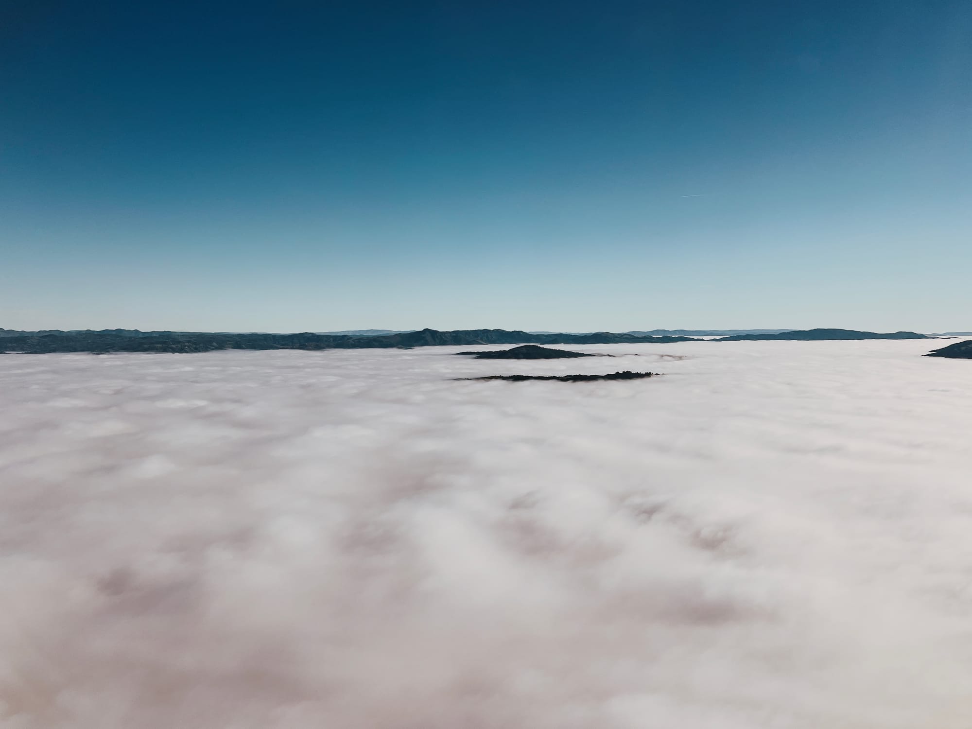 field notes hills like islands California from the window seat. California, as seen from my flight between Burbank and Santa Rosa. Flying above the Tule fog.