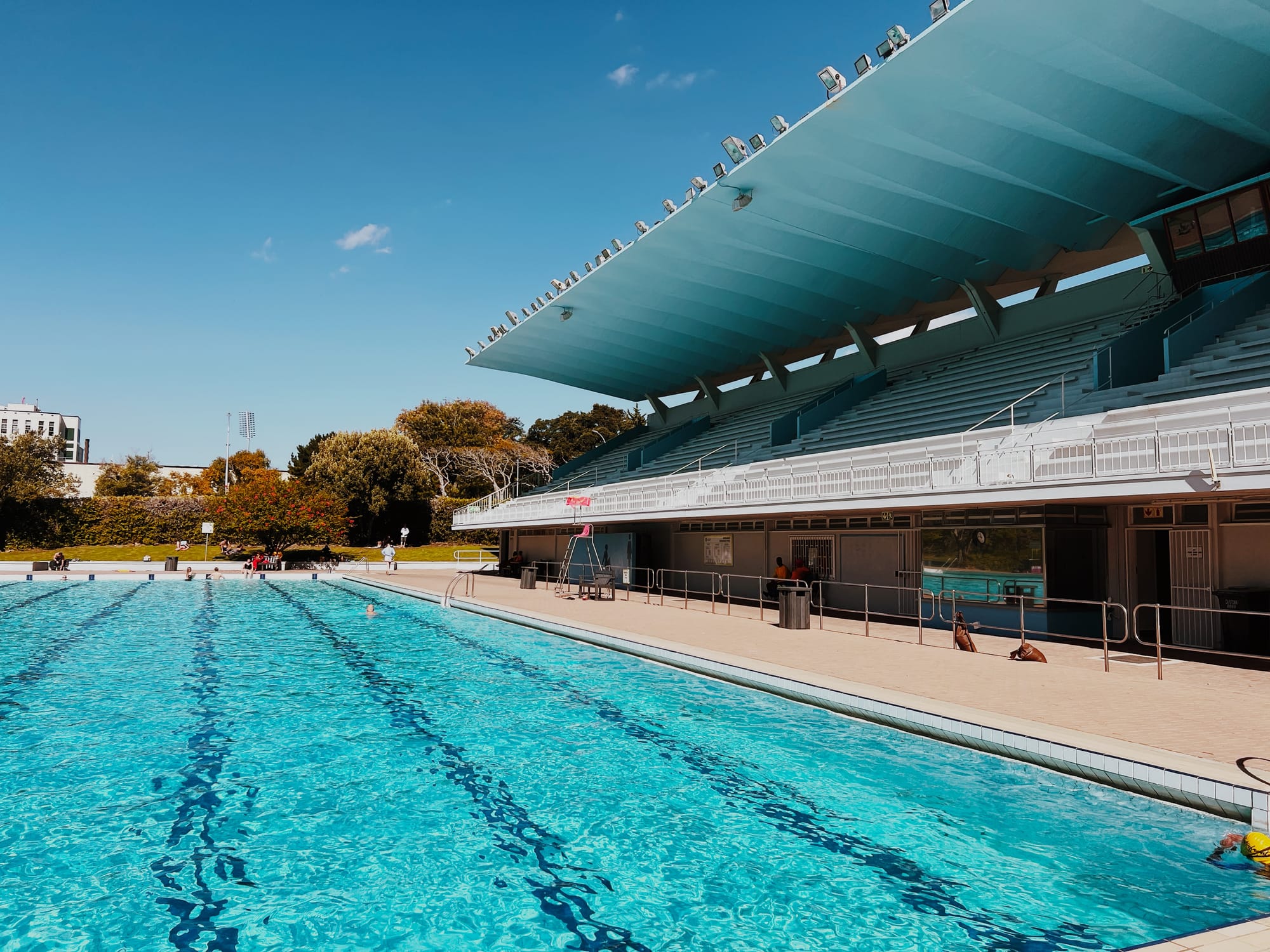 There is a 50m lap pool (which hosted inter-school swimming galas in my youth and likely still does), a diving pool (mysteriously out of order) and a shallow bowl-shaped splash pool inhabited, so often, by deliriously joyful children who then picnic on the nearby shaded lawns after.