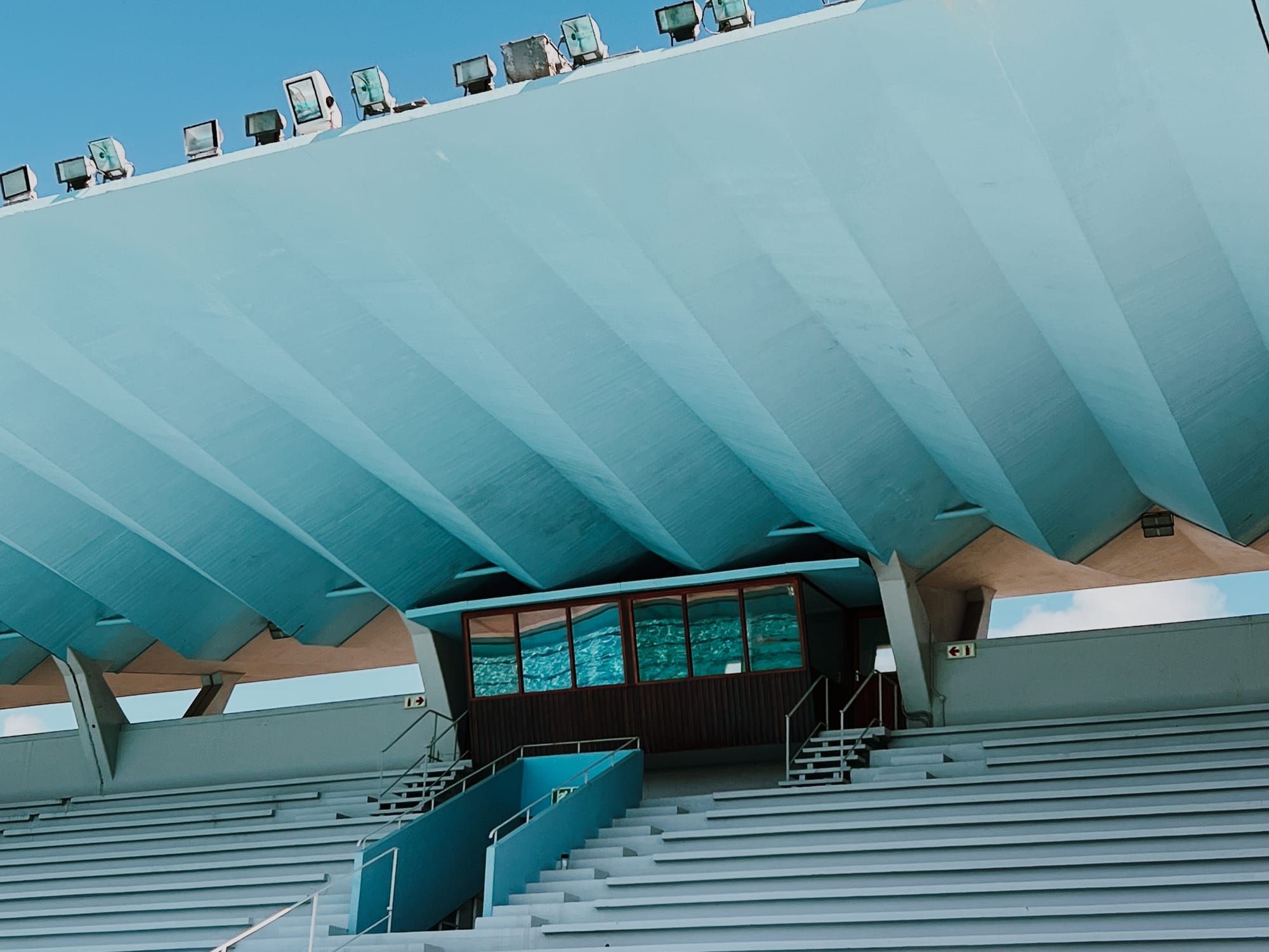 The 50m pool (where I swam 2km yesterday) is sparkling, light-shattered, pristine chlorinated blue. A bounteous gift. A respite, a container, a blank page.