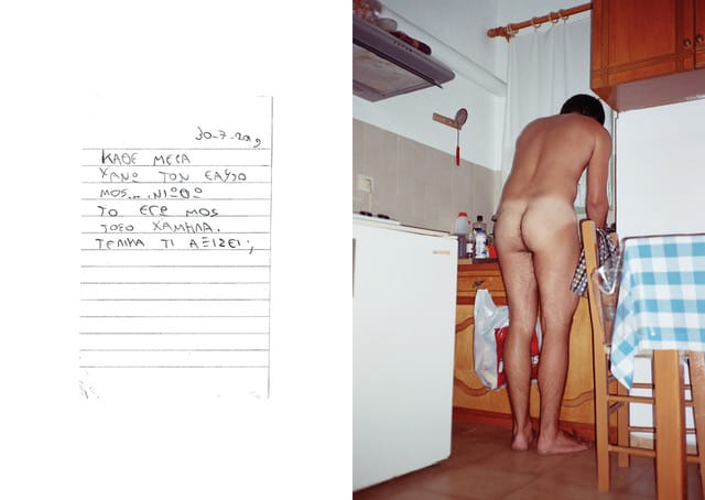 Dimitris Tairis's KERKIS takes us on a personal photographic journey of intimate everyday moments accompanied by hand-written notes which tell the story of the photographer’s relationship with another man during the summer and fall of 2019, while living together on the island of Samos.
