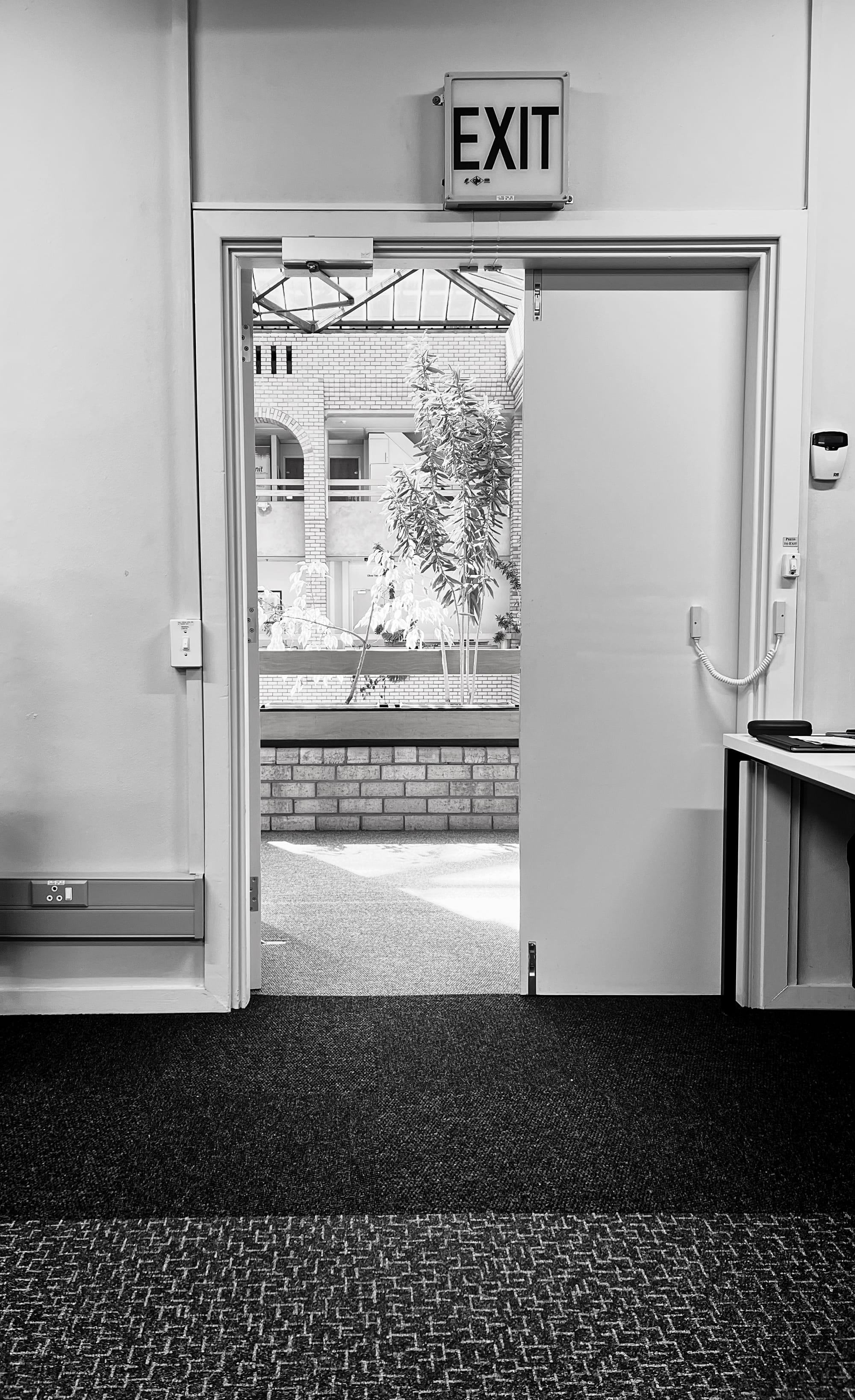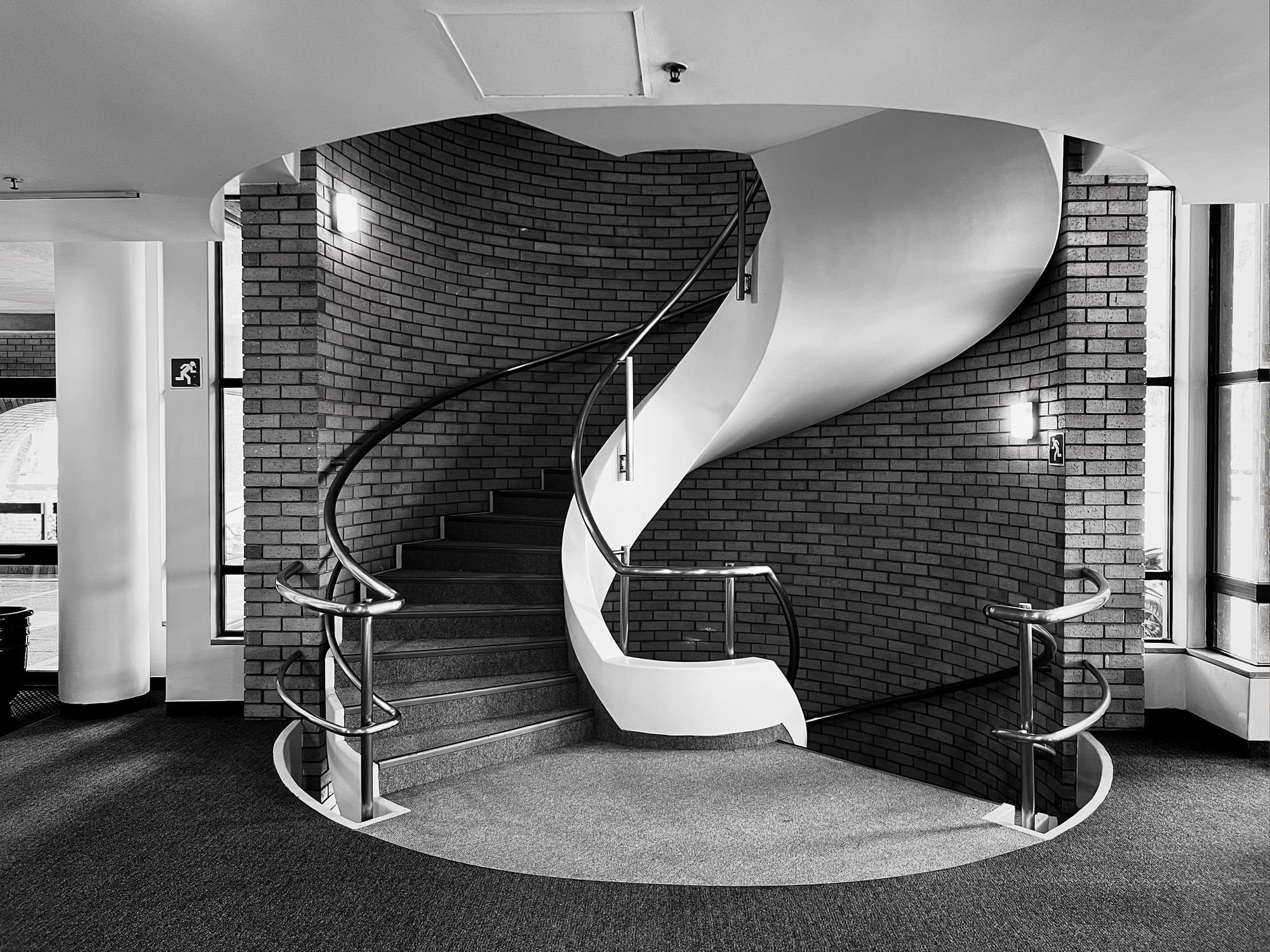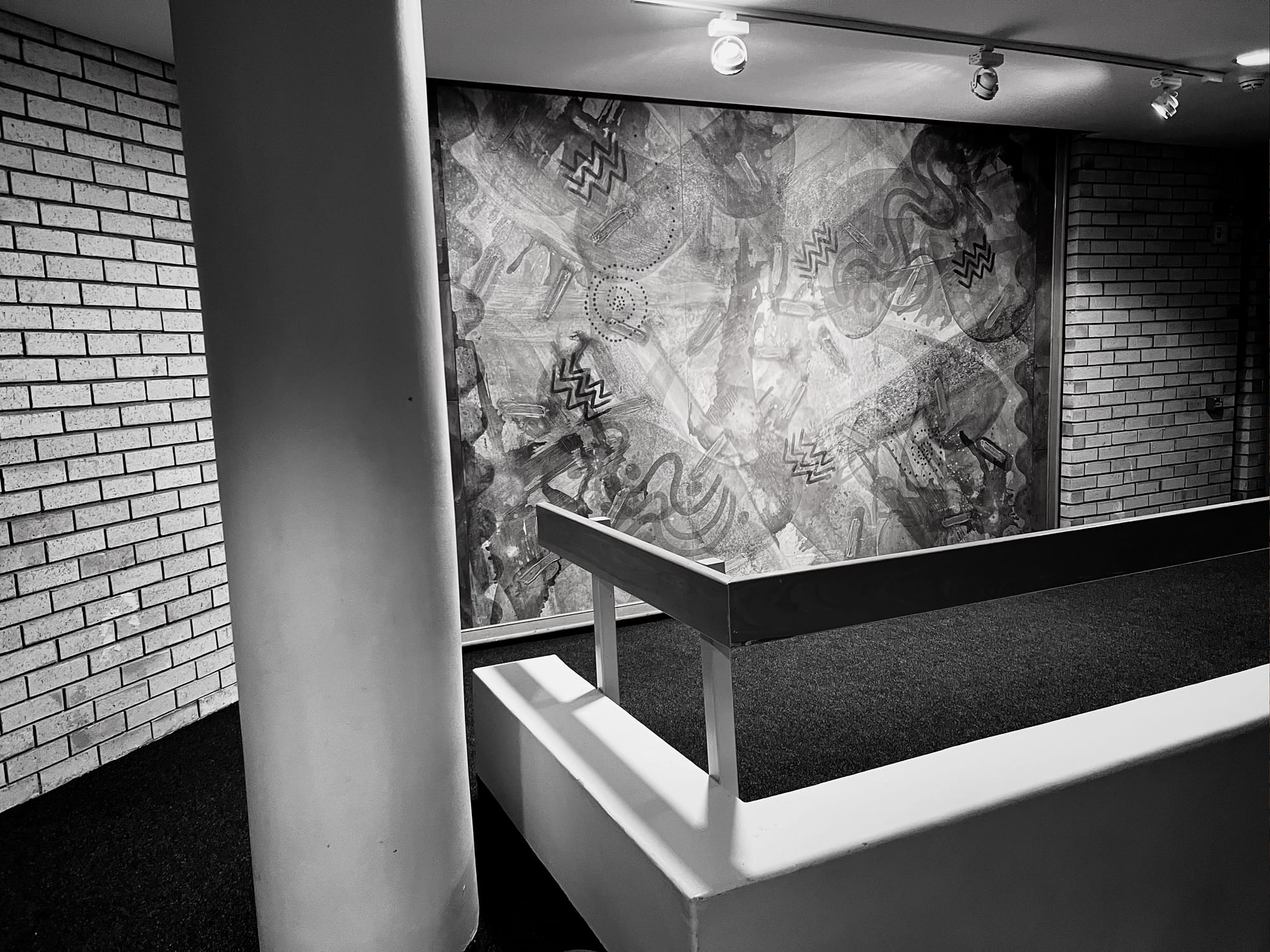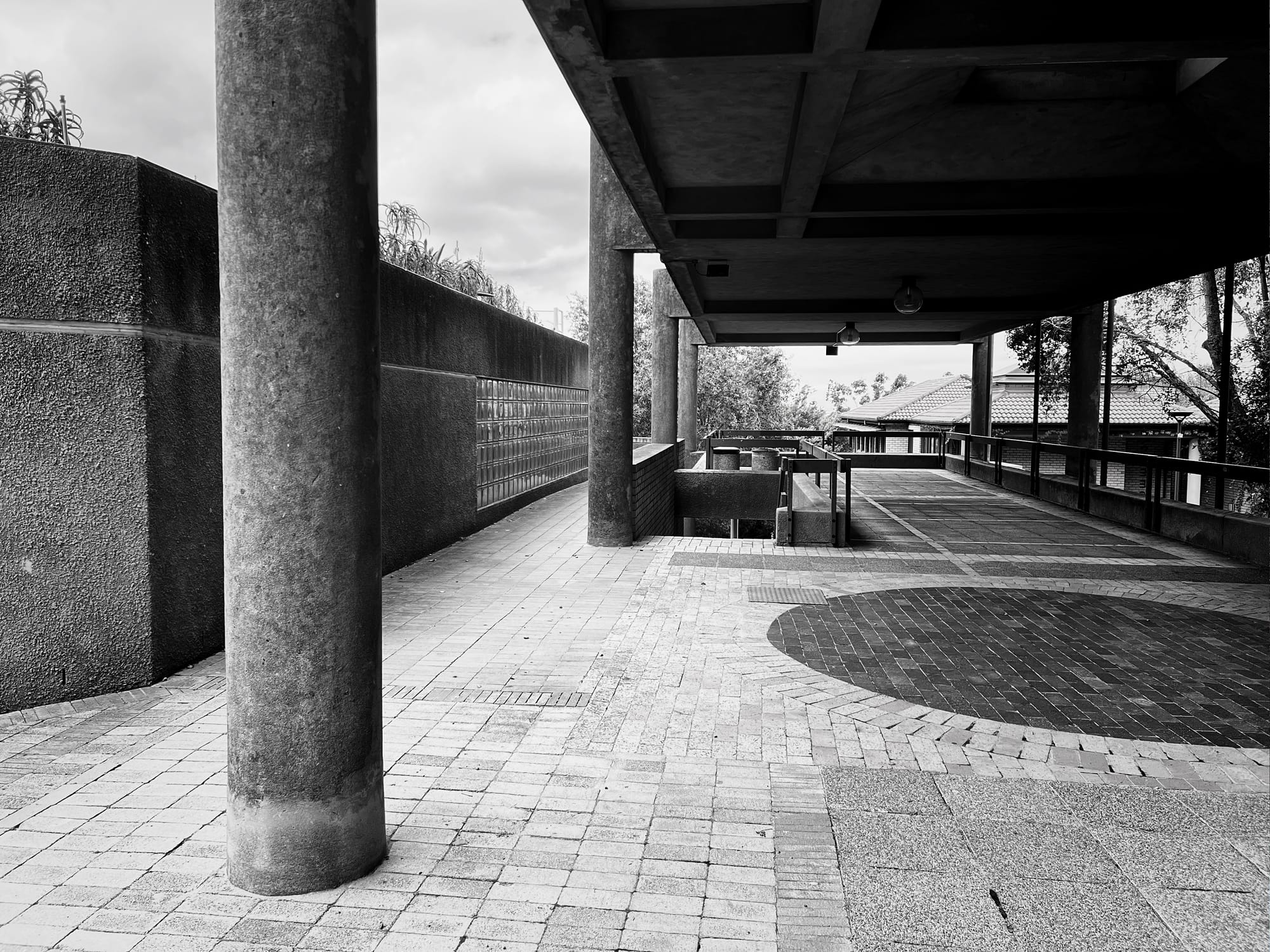 Anyway. This law student / novelist / amateur photographer is amused by how enchanted I am by the Kramer Building, a 1984 face brick and concrete edifice housing UCT's law faculty on the university's Middle Campus. Amused because I suspect my younger (that is, teenaged) self would've found it drab, dour, cringy, "dated". The 2026 me finds it sexy without trying to be. (Hence the compulsive picture-taking.) A faded, unassuming, self-possessed modern. At the very, very outer edge of the mid-century, before it teeters off into post-modern insanity. I looked up when it was built: 1984, apparently. (So, not really mid-century at all.) Helvetica everywhere (now, that is modern). A smattering of art. And delightful plants, inside and outside, too.