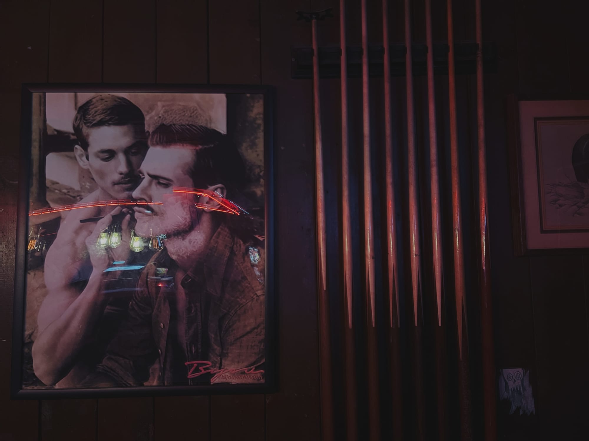 As the soggy storm continued, we travelled south, to the neighbouring county, to visit friends (who, themselves, were visiting from elsewhere). We brought a load of laundry which we did at the Airbnb where we stayed the night; I charged up my phone and computer. I found myself playing pool in a gay bar for the second time in as many months. Like the previous one, this bar was largely empty; cosy and lonely. The barman was sipping a glass mug of herbal tea.